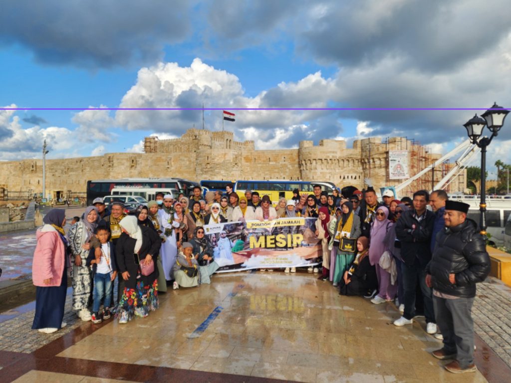 Abu Dhabi (Transit) – Cairo – Alexandria (Tiba di Mesir, lalu menuju Alexandria untuk wisata panorama Benteng Qaitbay, berziarah ke makam ulama (Abul Abbas Al-Mursi, Imam Busiri, Nabi Danial, Lukman Al Hakim). Kembali ke Kairo untuk makan malam dan istirahat) - Hari ke-4